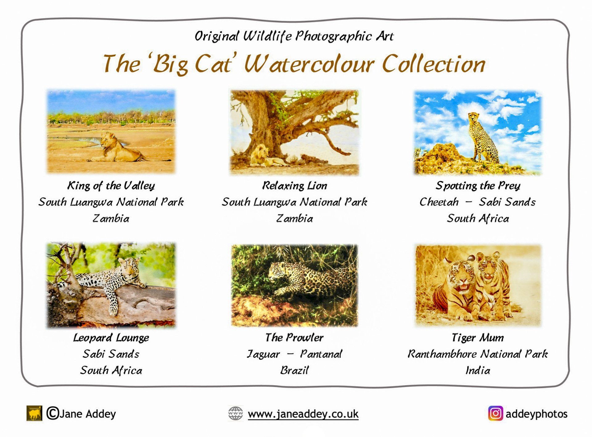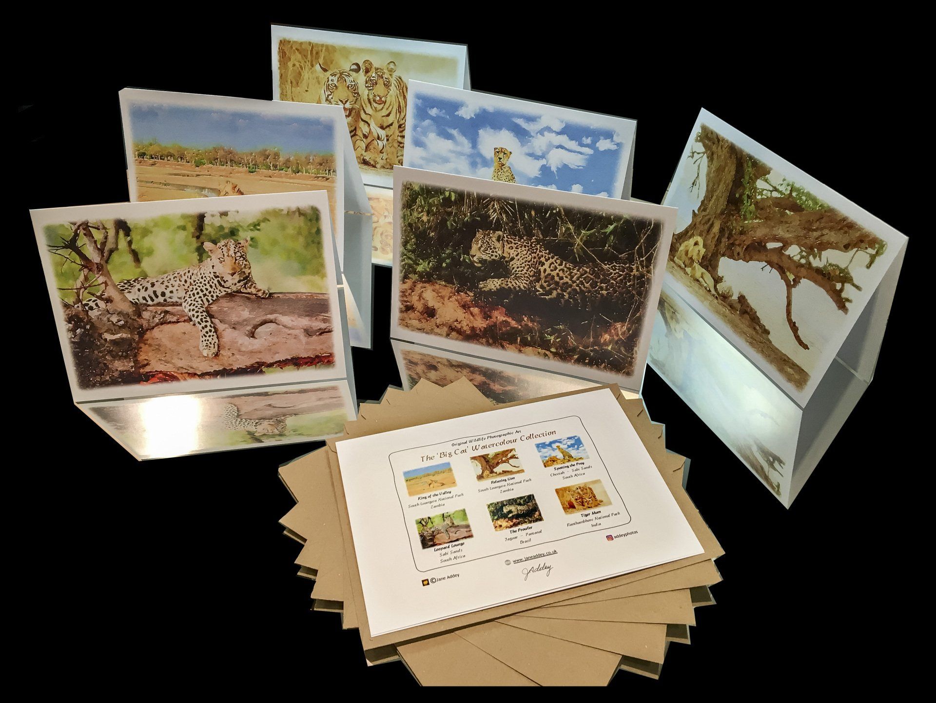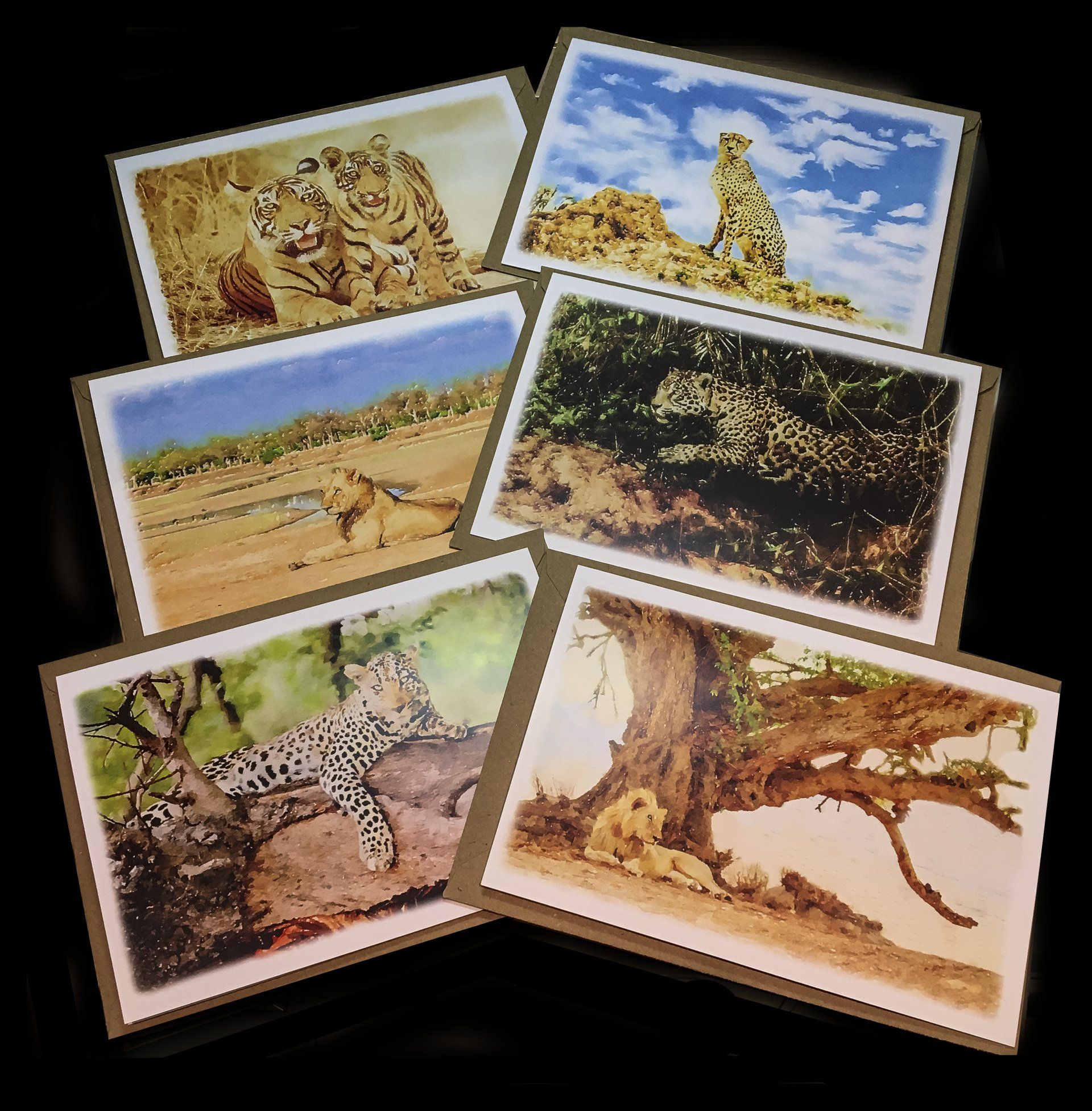 A unique set of SIX A5 greeting cards featuring some of the World's most iconic big cats.