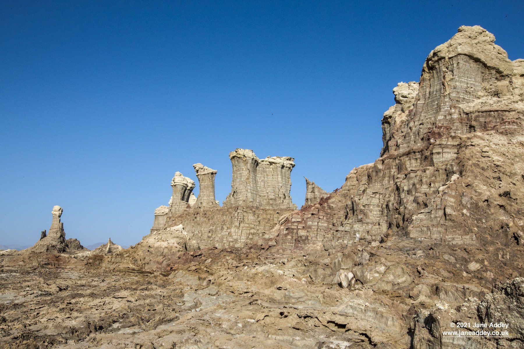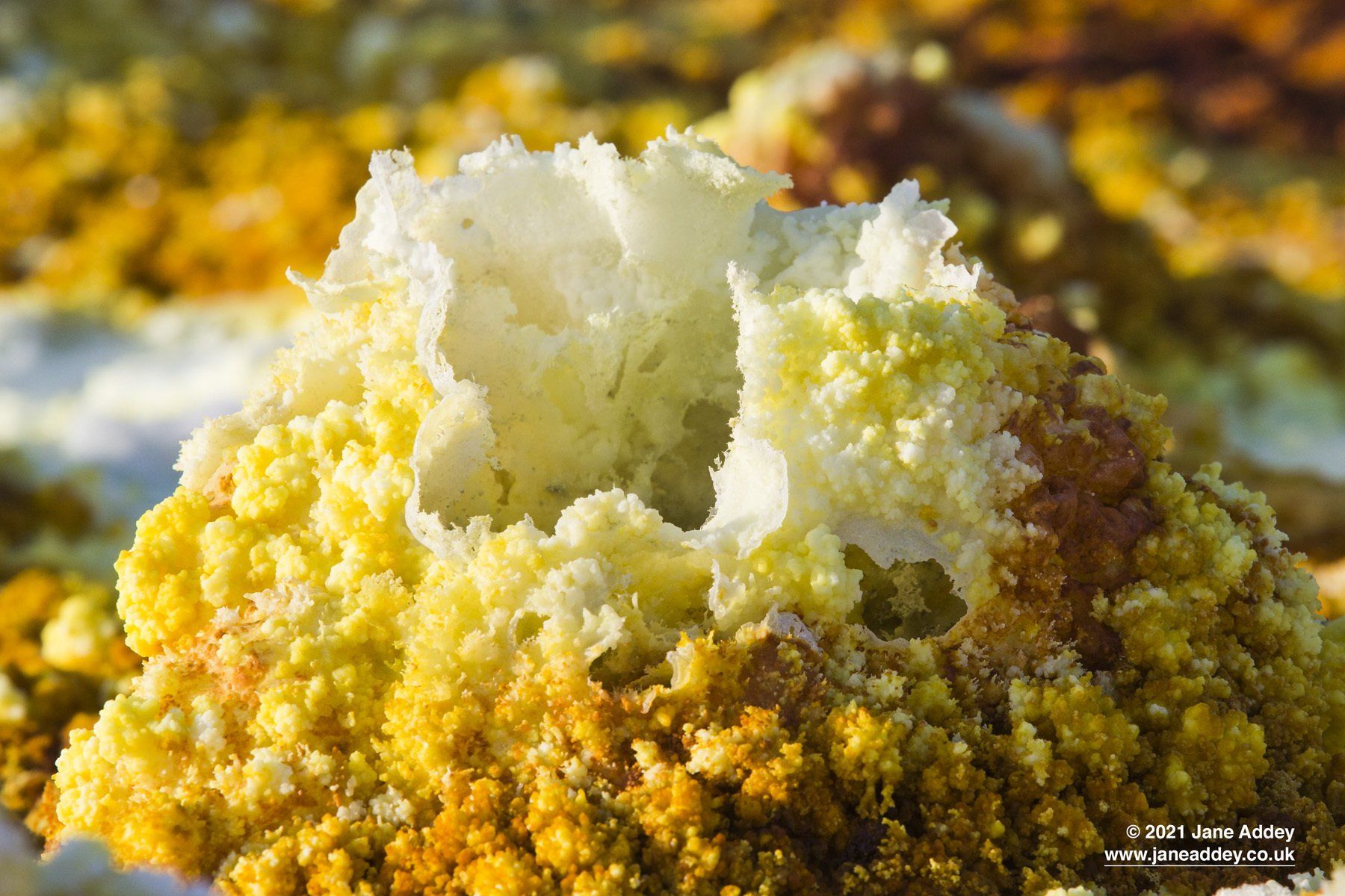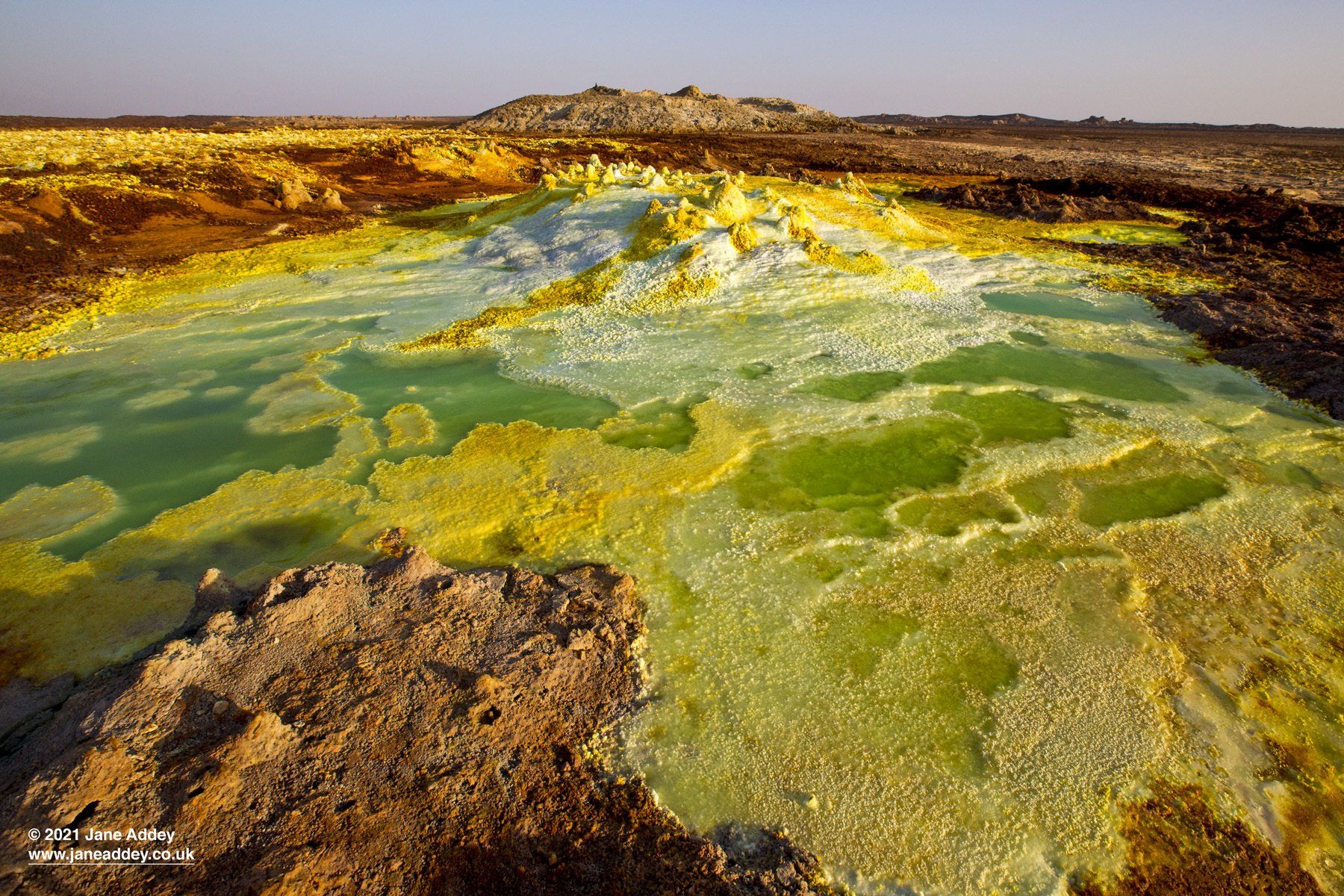 Sulphur Deposits - To the north of the Danakil Depression is Dallol and this area comprises of an unreal landscape with huge salt crystals shaped like mushrooms. Passing these structures and through what one would imagine to be moonscape lands is the main attraction: The Sulphur Deposits. There were greens, yellows, oranges and whites everywhere in the shape of crystals as hot water bubbled up to the surface.
